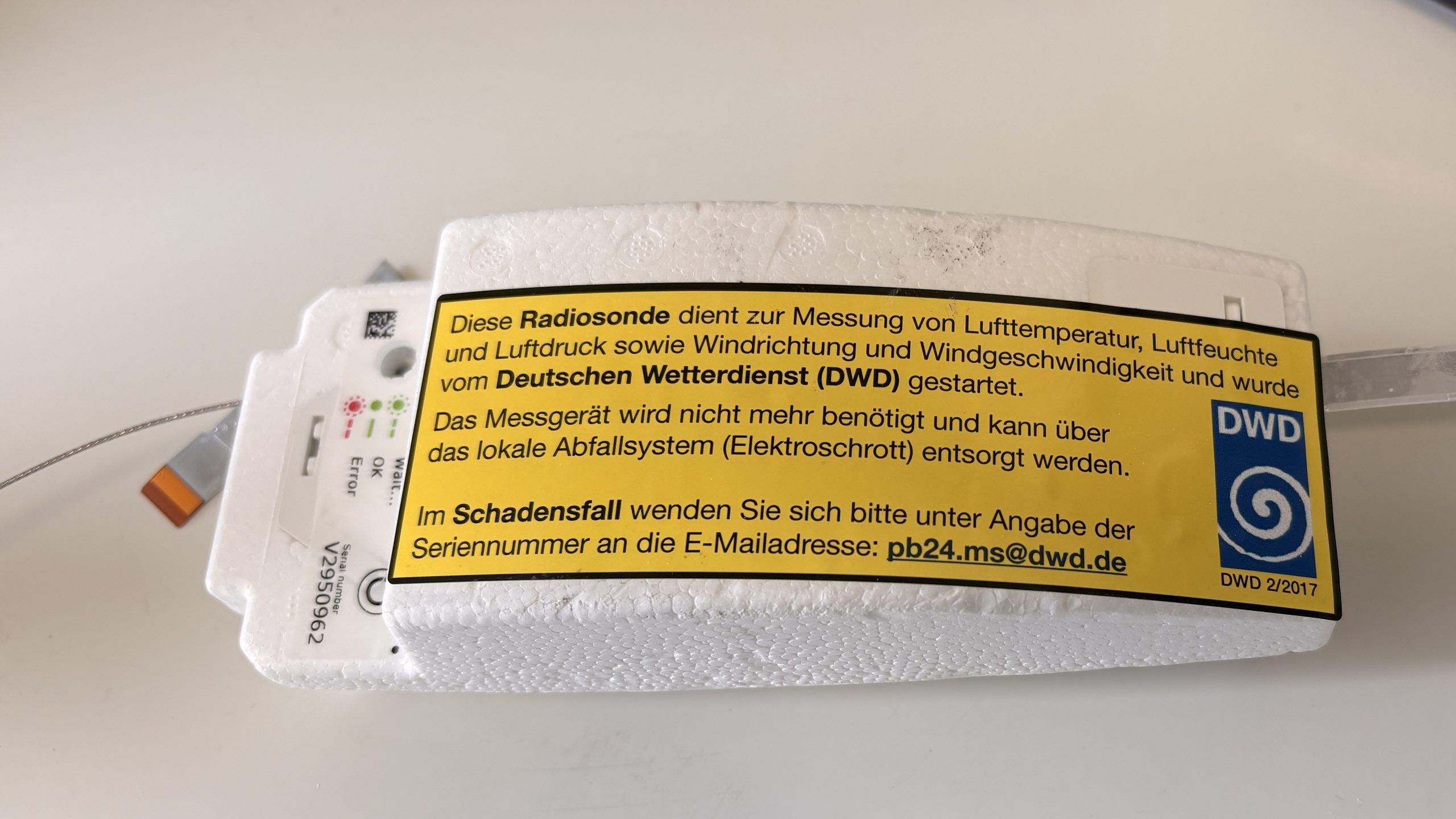 Wettersonden – auch Radiosonden genannt – sind kleine Messgeräte, die zweimal täglich von Wetterstationen weltweit an Wetterballonen in die Atmosphäre aufsteigen. Sie messen auf dem Weg nach oben Temperatur, Luftfeuchtigkeit, Luftdruck und Wind und senden die Daten per Funk zur Bodenstation. Die Ballons erreichen dabei Höhen von bis zu 35.000 Metern, bevor sie platzen und die Sonde mit einem kleinen Fallschirm wieder zu Boden sinkt.